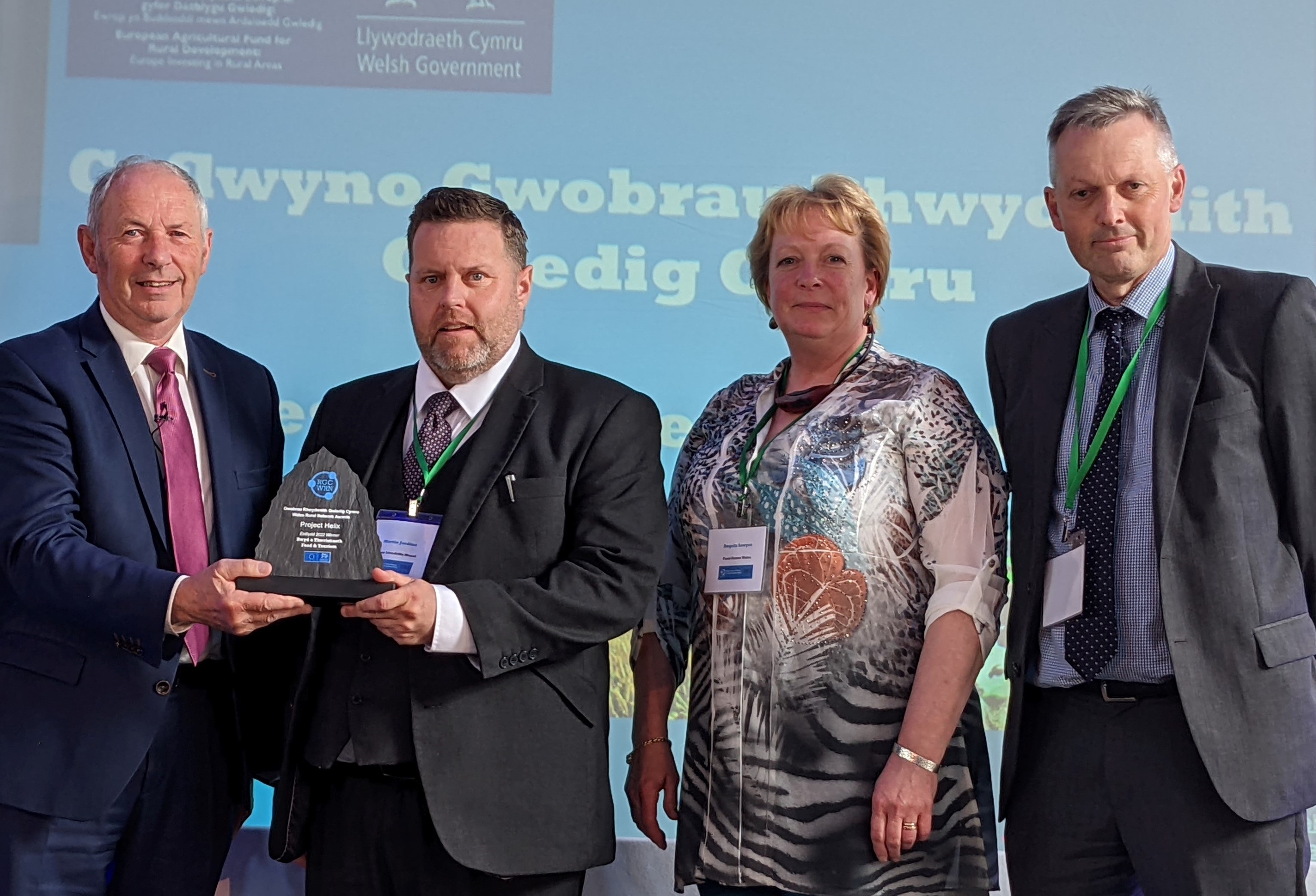 Enillodd y prosiect dan arweiniad Arloesi Bwyd Cymru ddwy wobr mewn seremoni i ddathlu prosiectau sydd wedi elwa ar Raglen Datblygu Gwledig yr Undeb Ewropeaidd.